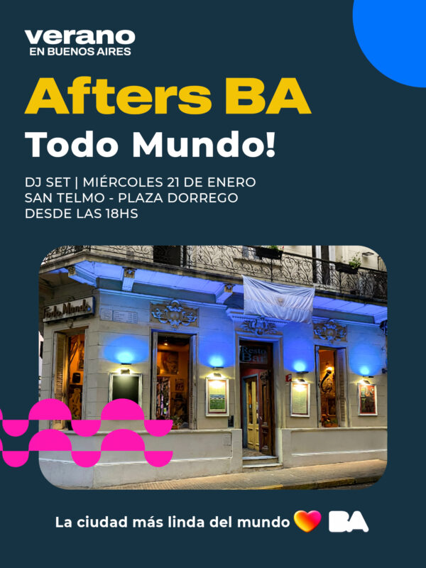 En el marco de Afters BA, te invitamos a disfrutar de una tarde-noche porteña con DJ sets en vivo, buena música, tragos y comida, en una de las esquinas más lindas de Buenos Aires, frente a Plaza Dorrego.