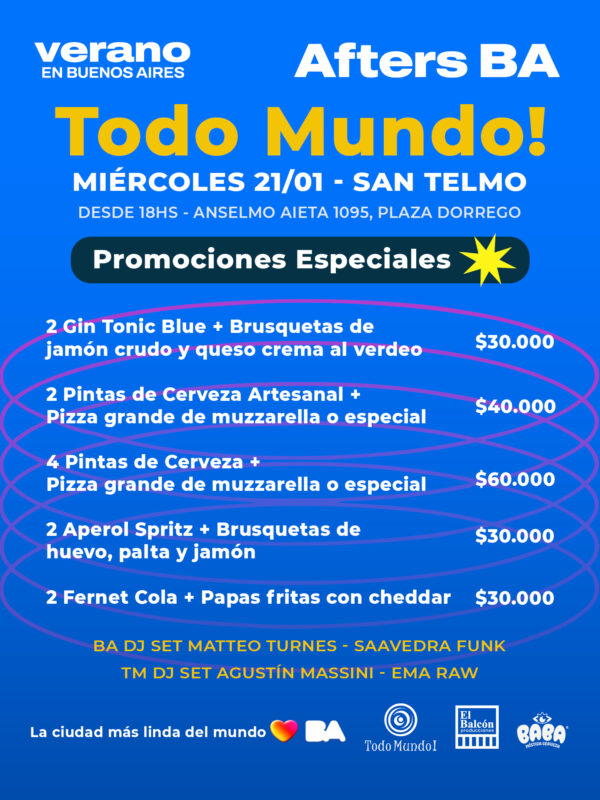 El verano se vive en San Telmo y en Todo Mundo lo celebramos con música, promociones especiales y un plan ideal para cortar la semana.